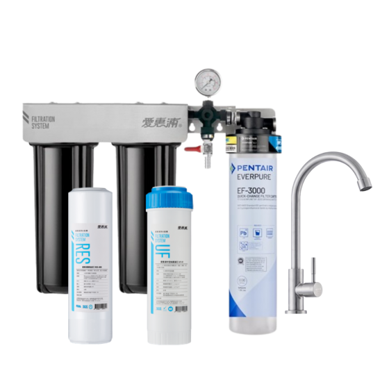 • 【EVERPURE 愛惠浦】PURVIVE Trio-EF3000 櫥下型三道式生飲淨水器 (前置樹脂+中空絲膜)《原廠技師安裝/ 贈基本安裝》