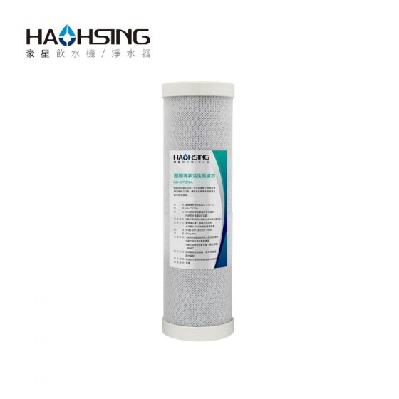 【濾芯規格】 型號: HS-CTO10A 品名: 壓縮塊狀活性碳濾芯 過濾材質: CTO網狀椰殼壓縮活性碳濾芯 濾瓶材質: 食品級PP材質 產品尺寸:∅63 x 250mm 產品淨重: 350g ± 10% 出水流量: 2L/min 更換週期: 6個月