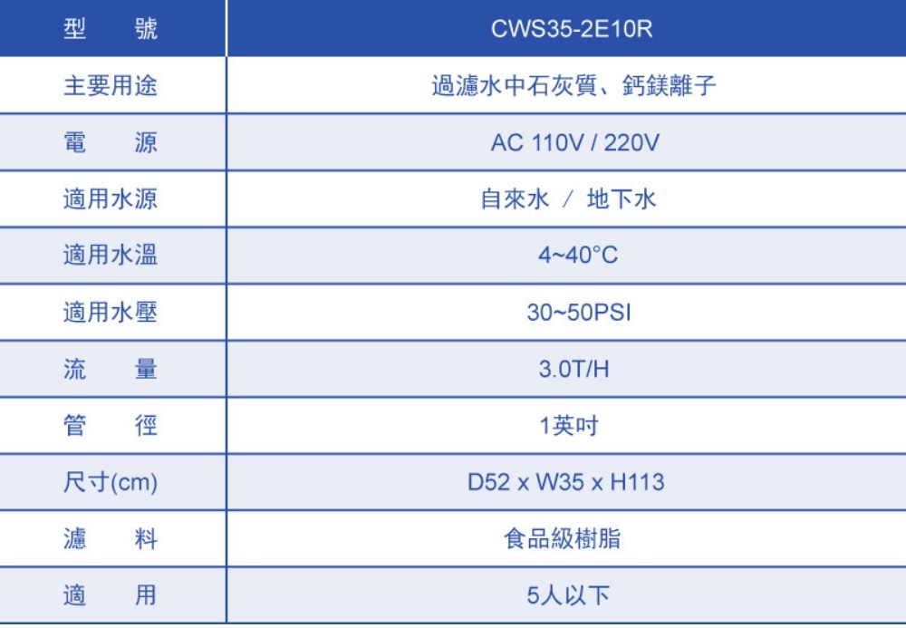 • 有效過濾水中的石灰質及水垢,軟化生活用水
