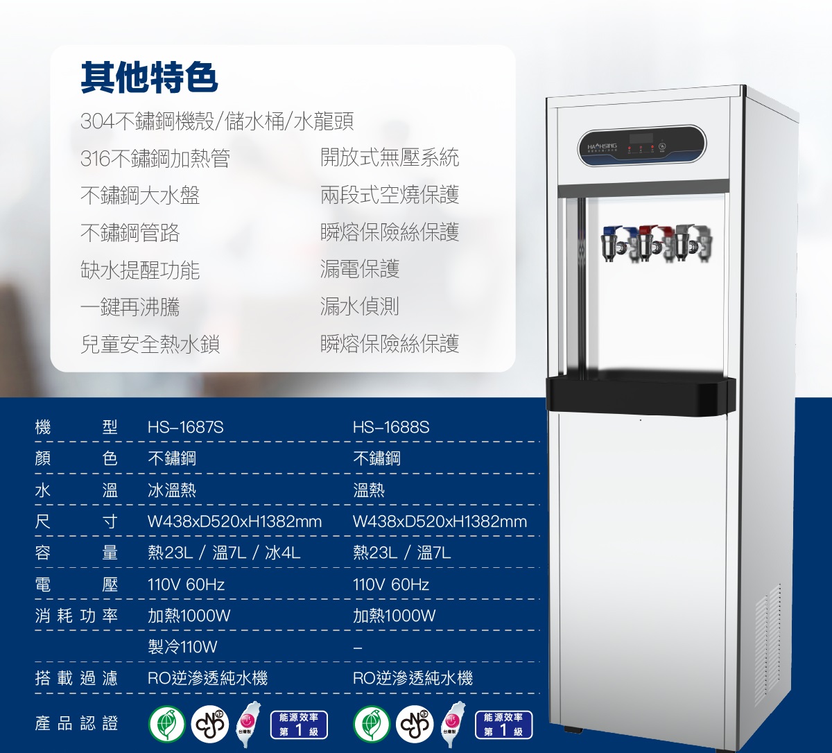 【HAOHSING 豪星】HS-1688S 商用龍頭雙溫飲水機(搭配RO淨水器 )《贈基本安裝》