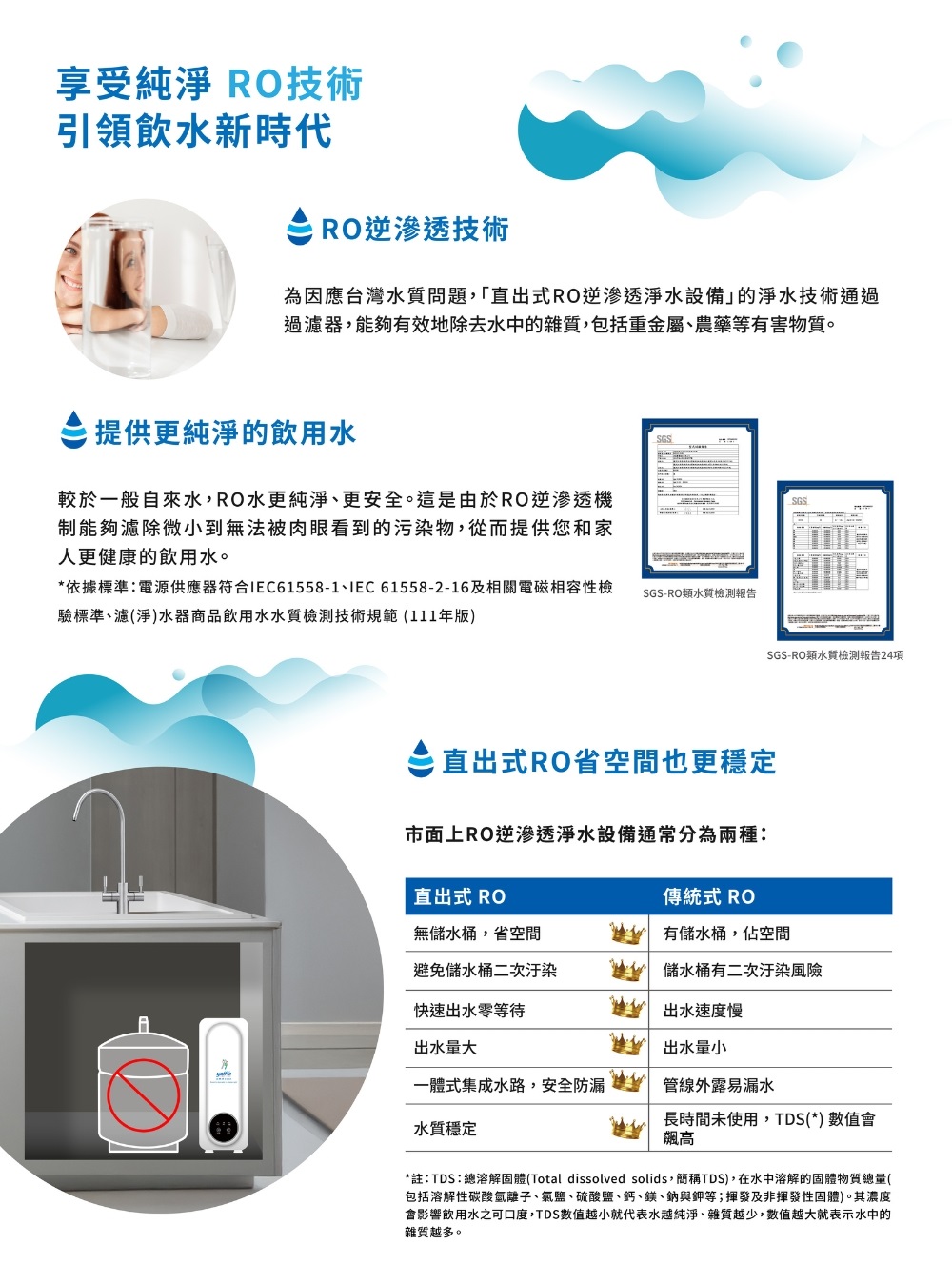 ◆ 依據標準:電源供應器符合IEC 61558-1、IEC 61558-2-16及相關電磁相容性檢驗標準、濾(淨)水器商品飲用水水質檢測技術規範 (111年版)