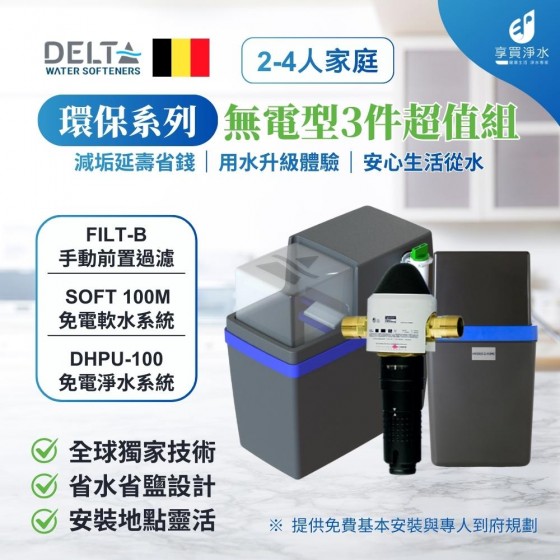 █ Delta HYDROSOFT 100M 免電力軟水機 (3公升單罐)