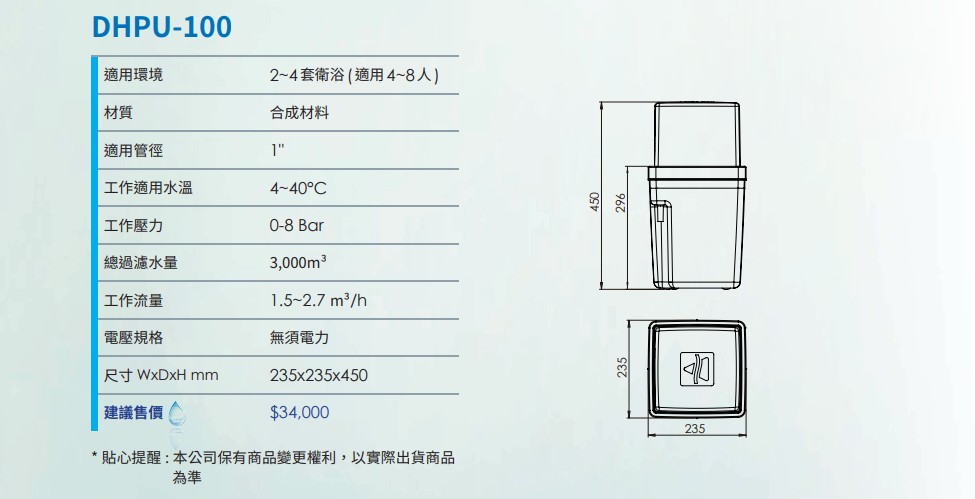 ○ 適用2-4套衛浴(約4-8人家庭使用)