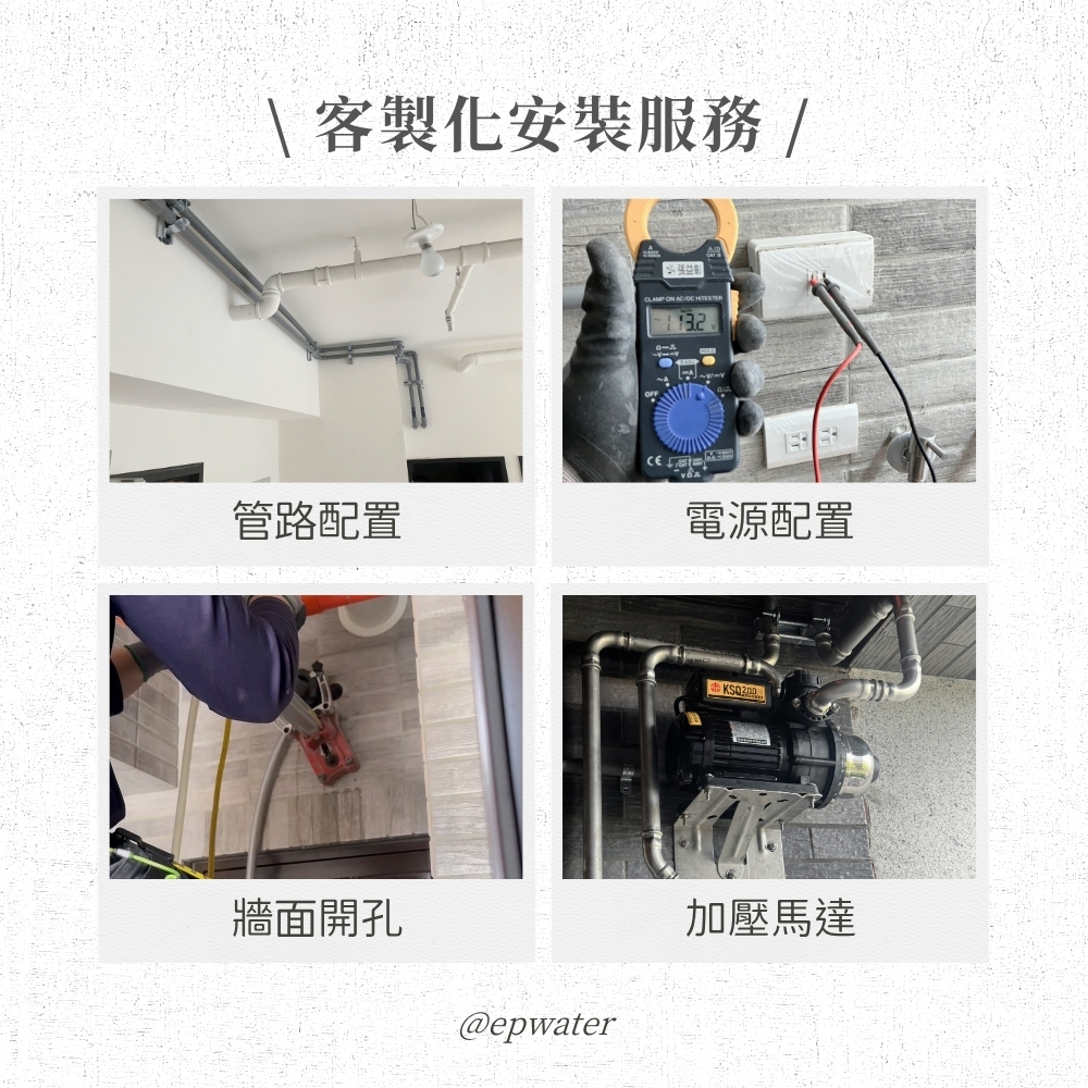 → 本商品含標準安裝服務(PVC 管 3 米內),使用商品所附原廠配件完成安裝。若現場需額外施工(如新增電盒、延長水管、洗洞、安裝加壓馬達等),將依現場狀況另行報價,費用以實際施工計算。