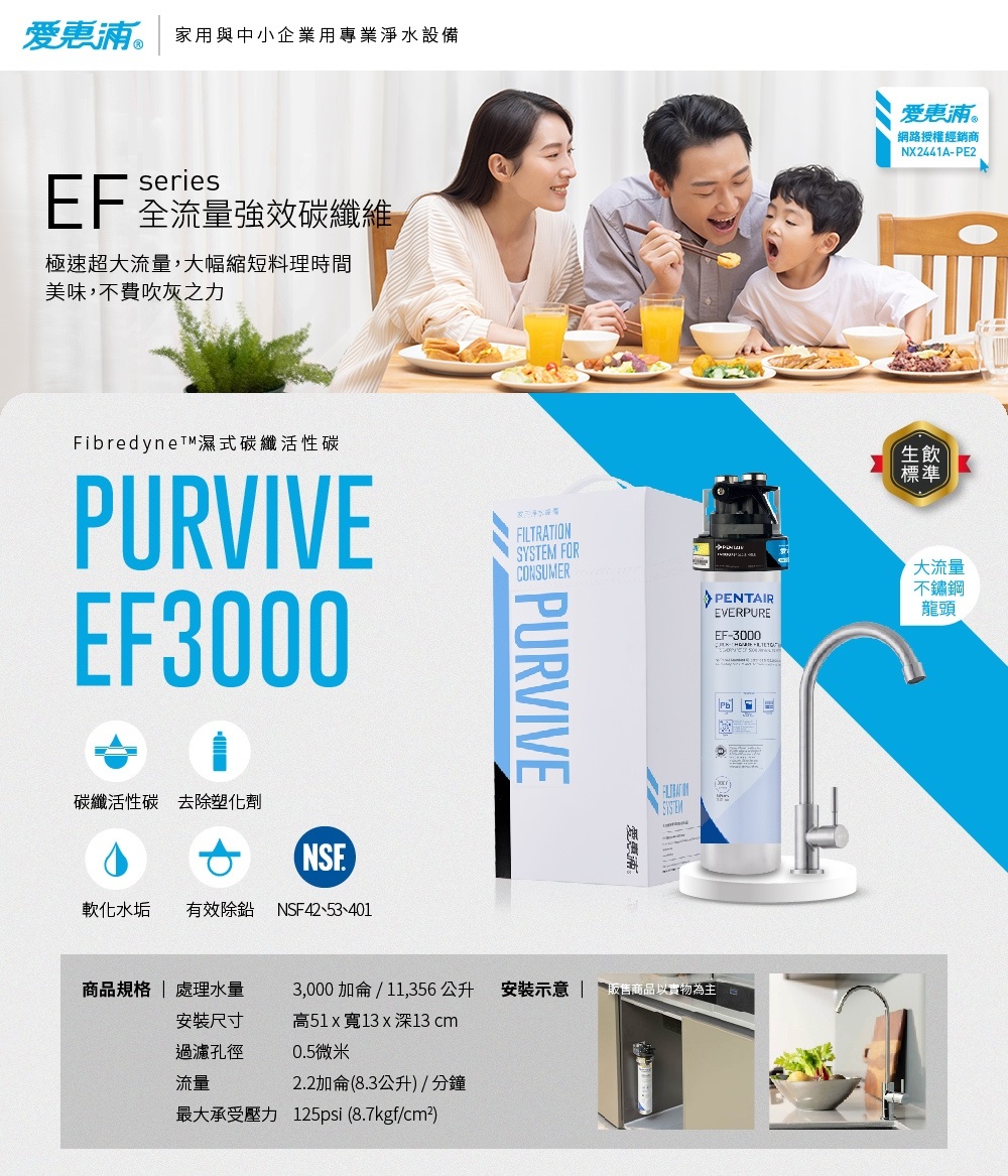 • 【EVERPURE 愛惠浦】PURVIVE Trio-EF3000 大流量 櫥下型三道式生飲淨水器 (前置樹脂+PP)《原廠技師安裝/ 贈基本安裝》