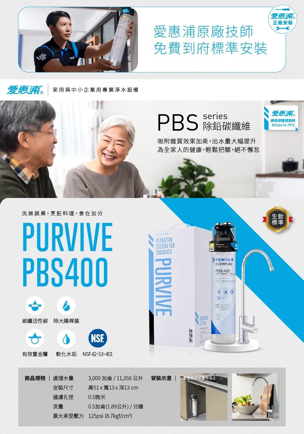 【EVERPURE 愛惠浦】 PURVIVE PBS400 櫥下型生飲淨水器《原廠技師安裝/ 贈基本安裝》