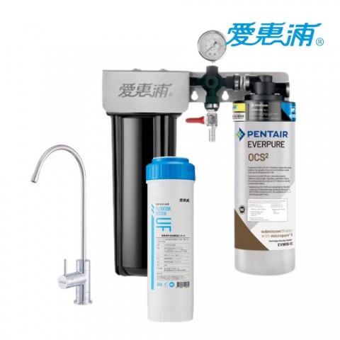 【EVERPURE 愛惠浦】 PURVIVE Duo-OCS2 櫥下型兩道式生飲淨水器 (前置樹脂) 《原廠技師安裝/ 贈基本安裝》