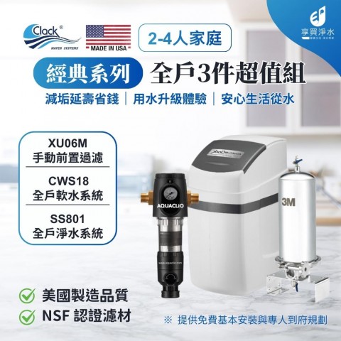 克拉克 CWS18 智能軟水系統 + 3M SS801全戶不鏽鋼淨水系統+手動前置過濾 (全戶三件組)