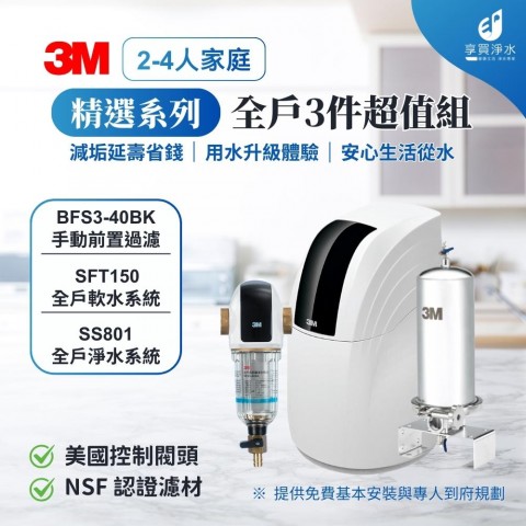 3M SFT-150 全戶式軟水系統 + SS801全戶不鏽鋼淨水系統+手動前置過濾 (全戶三件組)